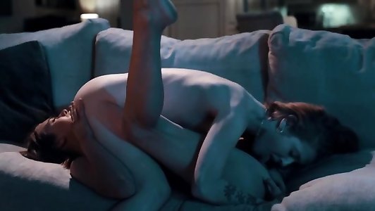 Ginger-haired chesty model Andi James gets romped nut sack deep on the couch