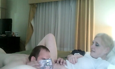 MATURE4K. Admirable twosome of mature female in stockings and interviewer