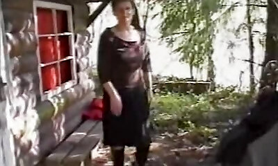 Big dildo in the juicy labia of a depraved Cougar outdoors