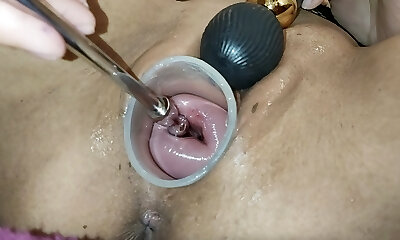 成熟的女同性恋者子宫颈插入和撒尿孔他妈的