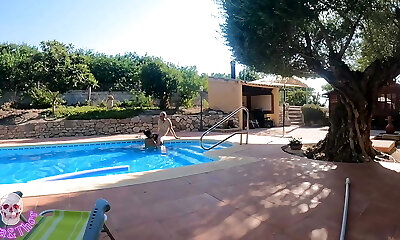 瑞奇西班牙蹂躏莎莉D&rsquo的;安吉洛&rsquo的;成熟的阴唇在游泳池