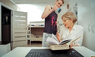 TUTOR4K.盖伊使搅拌上的金发学校教师