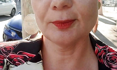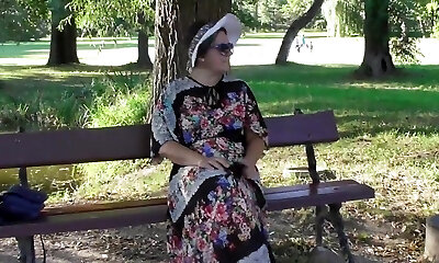 Cougar inexperienced lady in public flashing and blowing
