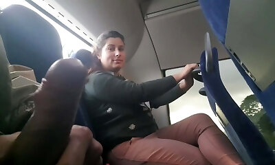 Exhibitionist lures MILF to Gargle & Jerk his Dick in Bus until He Cums