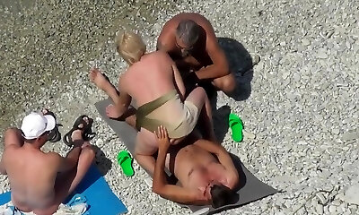 Public Beach Intercourse in Spain - Everyone can finger and plumb me on the beach